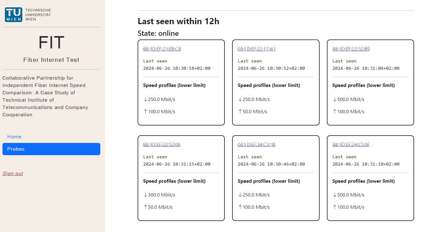 Die Messungen erfolgten sowohl tagsüber als auch nachts, um ein umfassendes Bild der tatsächlichen Netzqualität zeichnen zu können. Jeder unserer Testteilnehmer, der einen Glasfaser Internet-Tarif nutzt, hat ein vom CDA Verlag bereitgestelltes Messinstrument (Probe/Mini PC) verwendet, mit dem die Geschwindigkeiten und Latenzen gemessen und aufgezeichnet wurden. Die gesammelten Daten wurden anschließend von der TU Wien ausgewertet.