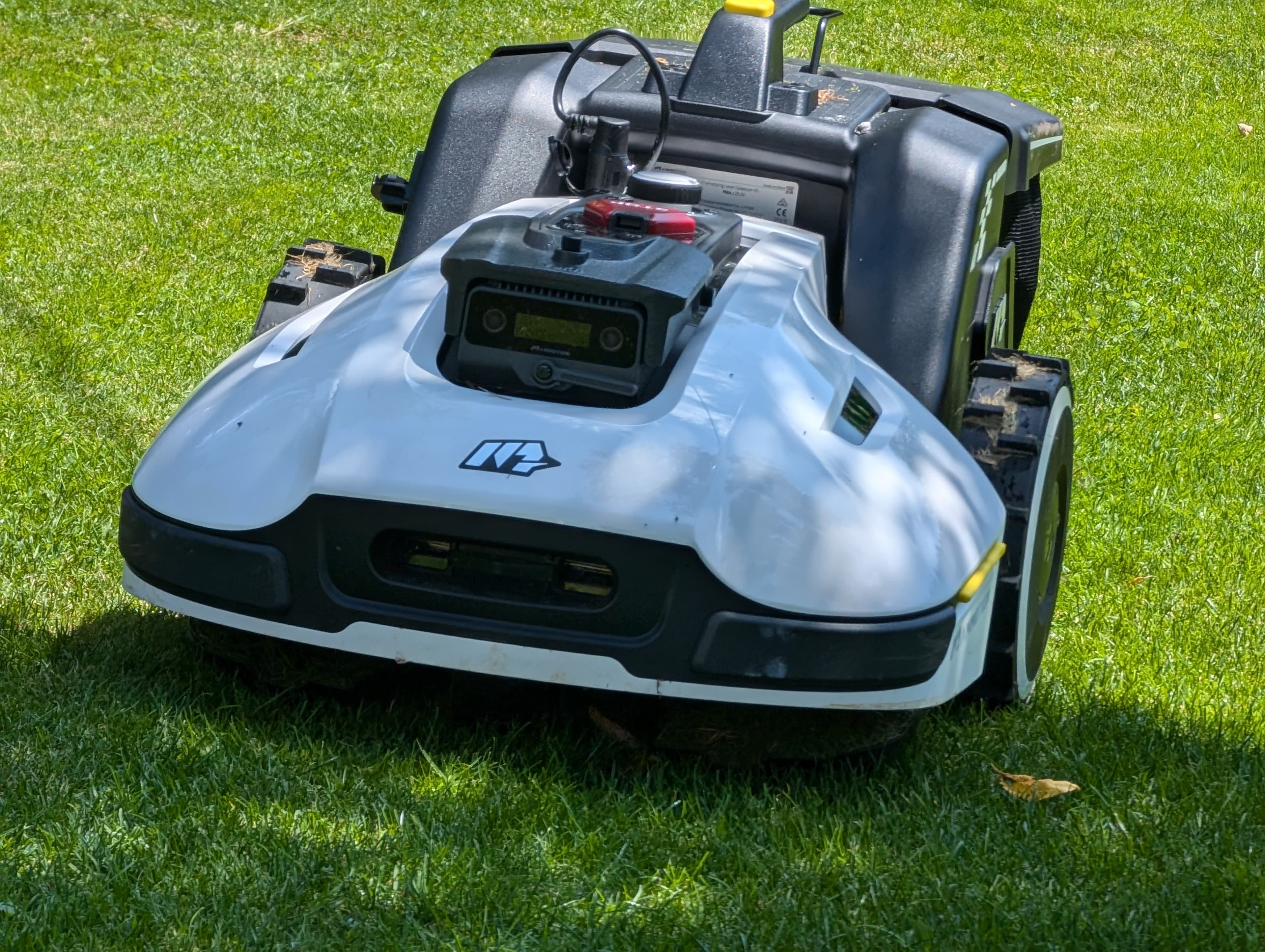 Der Akku schafft etwa 400 m² Rasen mit einer einzigen Ladung und benötigt dann rund zwei Stunden zum Aufladen. Mit dem optionalen Sammler kommt auch eine zweite Batterie, die zusätzlich im Yuka verbaut wird, sowie ein Gegengewicht das vorne montiert wird. An der Flächenleistung und Ladezeit ändert der Sammler mit Extra-Akku jedoch nichts.