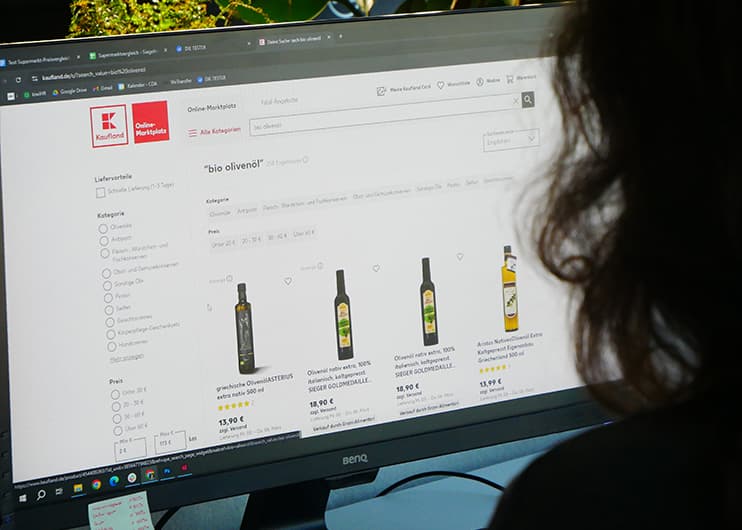 In diesem Jahr lag der Fokus auf den Onlineshops der Supermärkte. Während Rewe und Edeka (Edeka24) eigene Lieferdienste anbieten, vertreibt Kaufland seine Produkte ausschließlich über Drittanbieter, weshalb die Lieferung hier nicht in unsere Bewertung einfloss. Bewertet wurden der Bestellprozess (Mindestbestellwert und Zahlungsoptionen), die Lieferoptionen (Liefergebühren, Zeitfenster, Liefergebiete, lieferbares Sortiment, Lieferzeitraum) und unsere Testbestellungen.