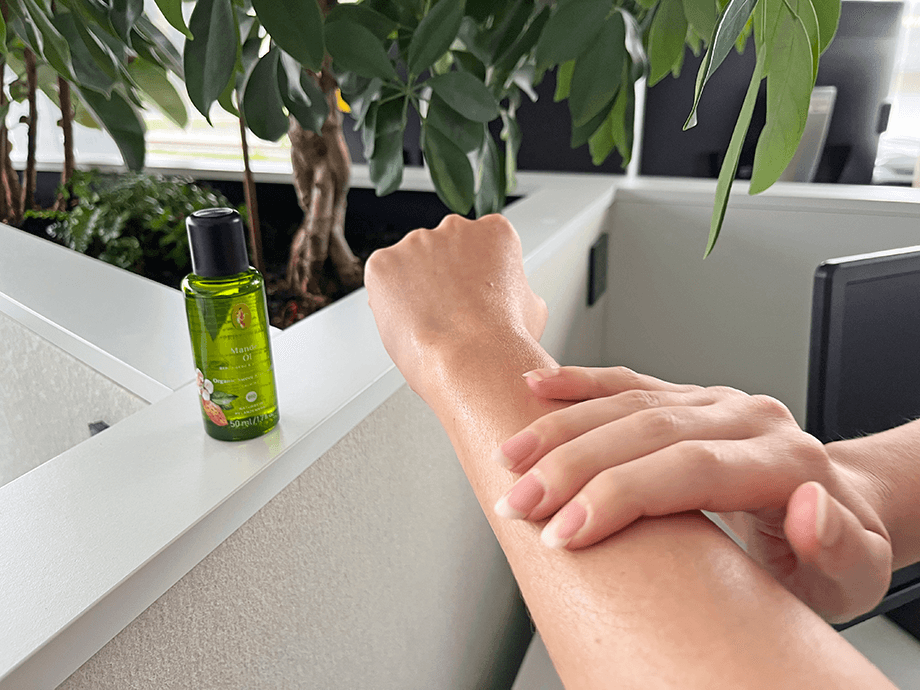 Ein besonderer Tipp: In Kombination mit ein paar Tropfen ätherischem Lavendelöl wird das Öl zur entspannenden Pflegekomposition – ideal für ein abendliches Pflegeritual.