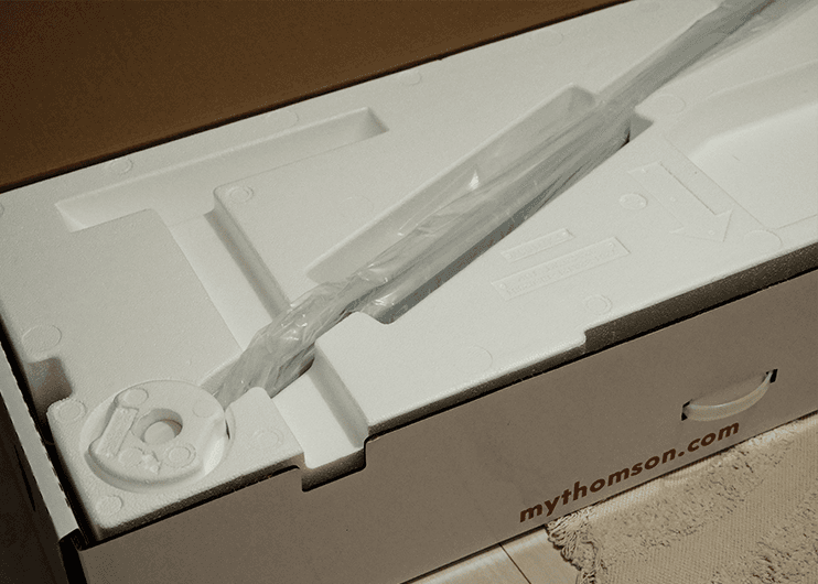 Bereits beim Auspacken überzeugt der THOMSON Go TV mit einer durchdachten Verpackung und einer benutzerfreundlichen Konstruktion. Der Aufbau ist simpel: Der Standfuß wird mit wenigen Handgriffen montiert, und der Fernseher ist schnell einsatzbereit. Optisch hebt sich das Gerät durch sein minimalistisches weißes Design hervor, das sich stilvoll in moderne Wohnräume einfügt.