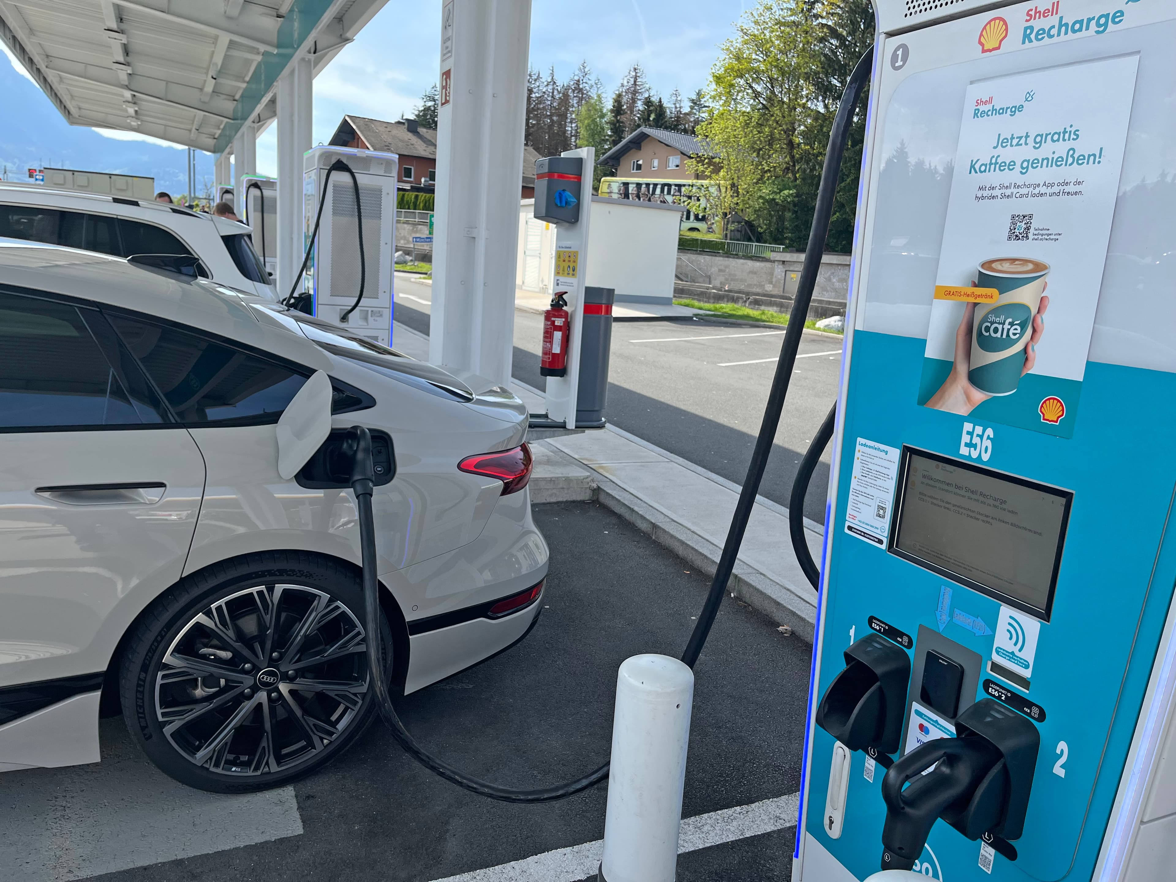 Der global agierende Mineralöl- und Erdgaskonzern mit Sitz in London betreibt knapp 300 Schnellladepunkte in Österreich, rund 3000 im DACH-Raum und europaweit mehr als 4000. Von electricar getestet wurden die Shell-Ladestationen an den Autobahnraststätten in Eben (Salzburg, Foto links) und Walserberg (Salzburg, unten) sowie in Ilz (Steiermark).