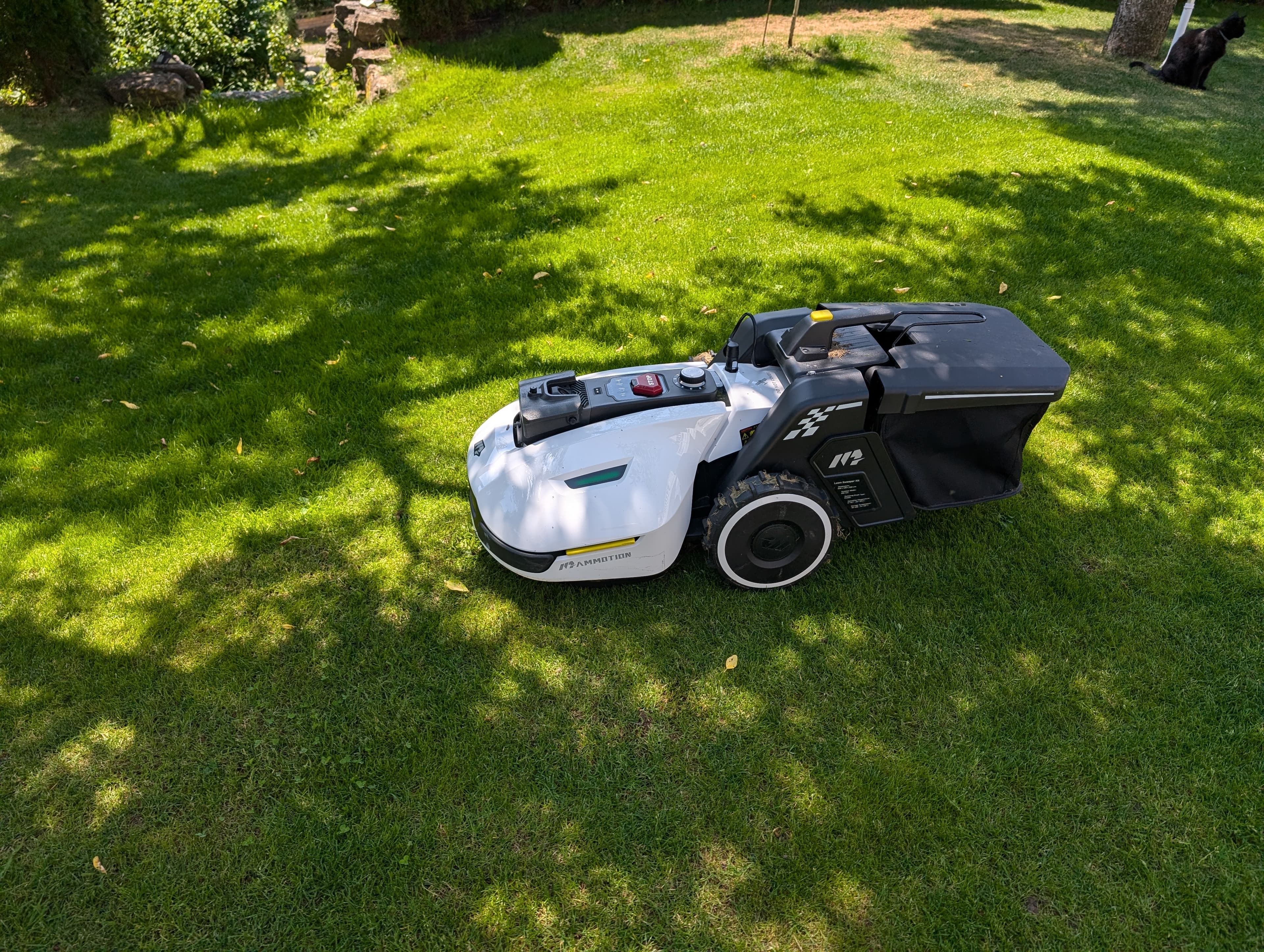 Der Mammotion Yuka unterscheidet sich deutlich von den früheren Modellen. Sehen die Luba-Modelle aus wie Formel-1 Autos, erinnert das neue Design des Yuka eher an ein Raumschiff. Mit einem Gewicht von nur 15,6 kg ist er auch leichter als die Luba-Modelle, aber immer noch schwerer als viele Konkurrenzprodukte. Der Yuka hat keinen Allradantrieb mehr, sondern wird nur von den hinteren Rädern angetrieben. Ein Stützrad vorne sorgt für Stabilität, was ihn für gleichmäßige Flächen besser geeignet macht. Aufbau und Installation des Yuka gehen so schnell und einfach, dass man sie nicht erwähnen muss.