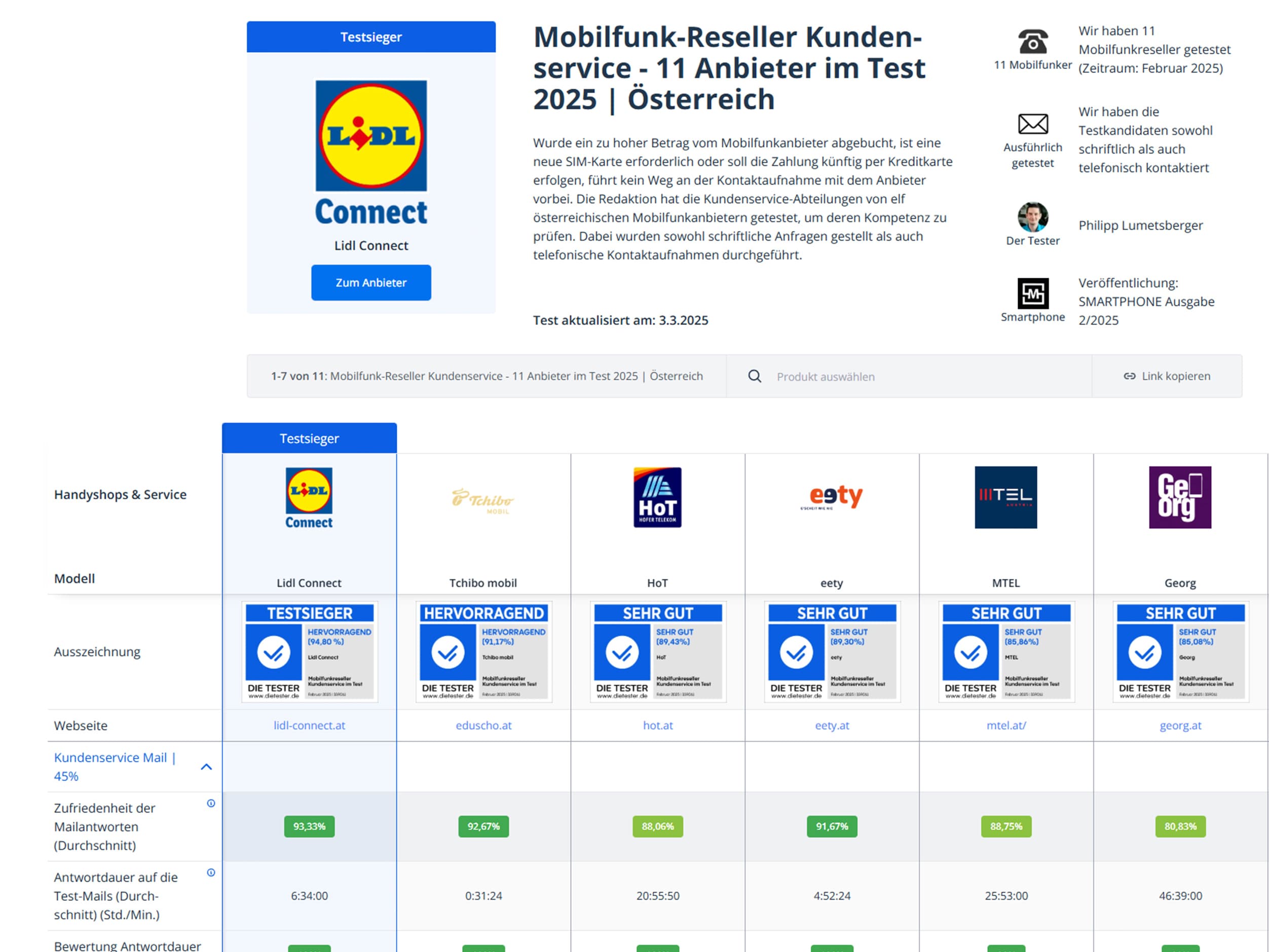 In der aggregierten Betrachtung aller relevanten Kriterien erreicht LIDL Connect die höchste Gesamtstabilität aller untersuchten Mobilfunk-Reseller im österreichischen Markt.