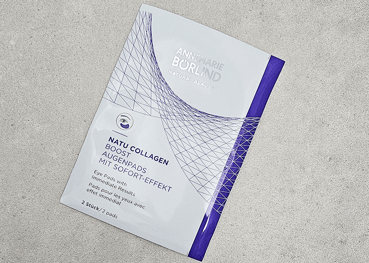 Die „Natu Collagen Boost“-Augenpads sind für alle Hauttypen geeignet und spenden mit pflanzlichem Kollagen aus Mais-, Soja- und Weizenproteinen Feuchtigkeit und regen die körpereigene Produktion mit weißer Lupine an. Sie fühlen sich während des Auflegens erfrischend an und danach sieht die empfindliche Zone der unteren Augenpartie tatsächlich straffer aus.