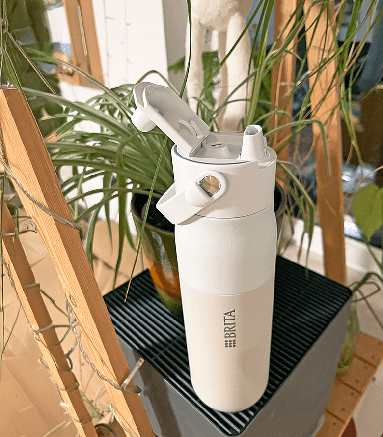 Die BRITA LARQ iQ fällt sofort durch ihr schlichtes, hochwertiges Design auf und liegt angenehm in der Hand. Sie ist aus Edelstahl gefertigt, isoliert doppelwandig und hält das Wasser über viele Stunden kühl. Besonders spannend ist die integrierte UV-C-Technologie, die das Wasser selbst reinigt und laut Hersteller bis zu 99,99 Prozent der E. Coli-Bakterien neutralisiert. Im Test wirkte das Ergebnis überzeugend, das Wasser schmeckte klar und frisch. Über die BRITA-App lassen sich zudem Trinkziele festlegen, der Tageskonsum tracken und Erinnerungen zum Wassertrinken aktivieren. Die Flasche lässt sich über USB-C aufladen. Nur der Deckel ist nicht spülmaschinengeeignet, ansonsten klappt die Reinigung unkompliziert. Mit einem Fassungsvermögen von 0,68 Litern und einem austauschbaren Filter, der rund zwei Monate hält, eignet sich die Flasche gut für unterwegs und hilft, Einwegplastik zu vermeiden.