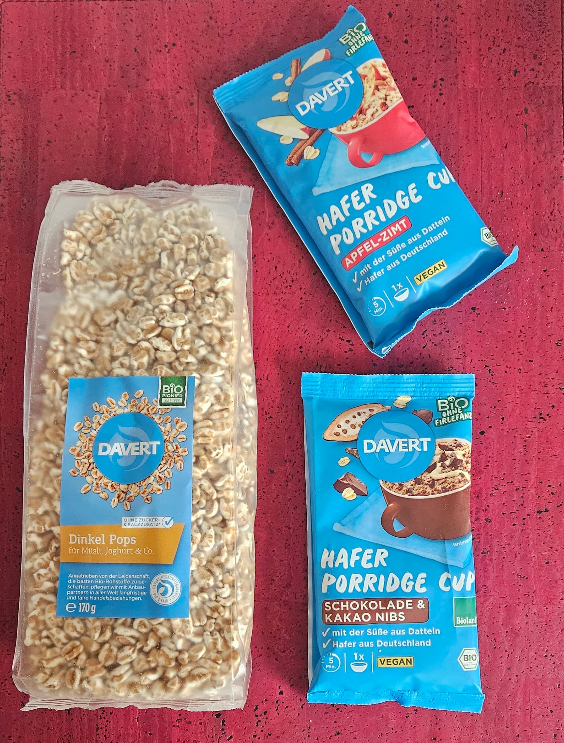 Die neuen Porridge Cups mit Hafer in den Geschmacksrichtungen Apfel-Zimt und Schokolade & Kakao Nibs von Davert sowie die Dinkel Pops waren in der Redaktion sehr schnell nicht mehr zu sichten. Sie schmecken nicht nur gut, sondern sind auch perfekt portioniert und schnell zubereitet. Was uns an den mineral- und ballaststoffreichen Zutaten besonders gefällt, ist, dass sie von deutschen Bioland-Höfen stammen und ihre Süße von Datteln stammt. Die Pops wurden nicht nur in Milch und Joghurt getaucht, sondern auch neben dem PC einfach so gesnackt. Unser Fazit: Die veganen Frühstücksprodukte sind ideal, um mit einem Gegengewicht zu den schweren Mahlzeiten an den Feiertagen oder für den gesunden Neuanfang im Januar in den Tag zu starten.