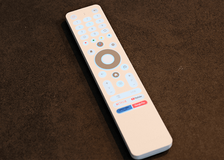 Bedient werden kann der Fernseher wahlweise über Buttons an der Rückseite, die grundlegende Funktionen wie etwa die Lautstärke steuern. Die beleuchtete Fernbedienung wiederum erleichtert die Steuerung bei schlechten Lichtverhältnissen.